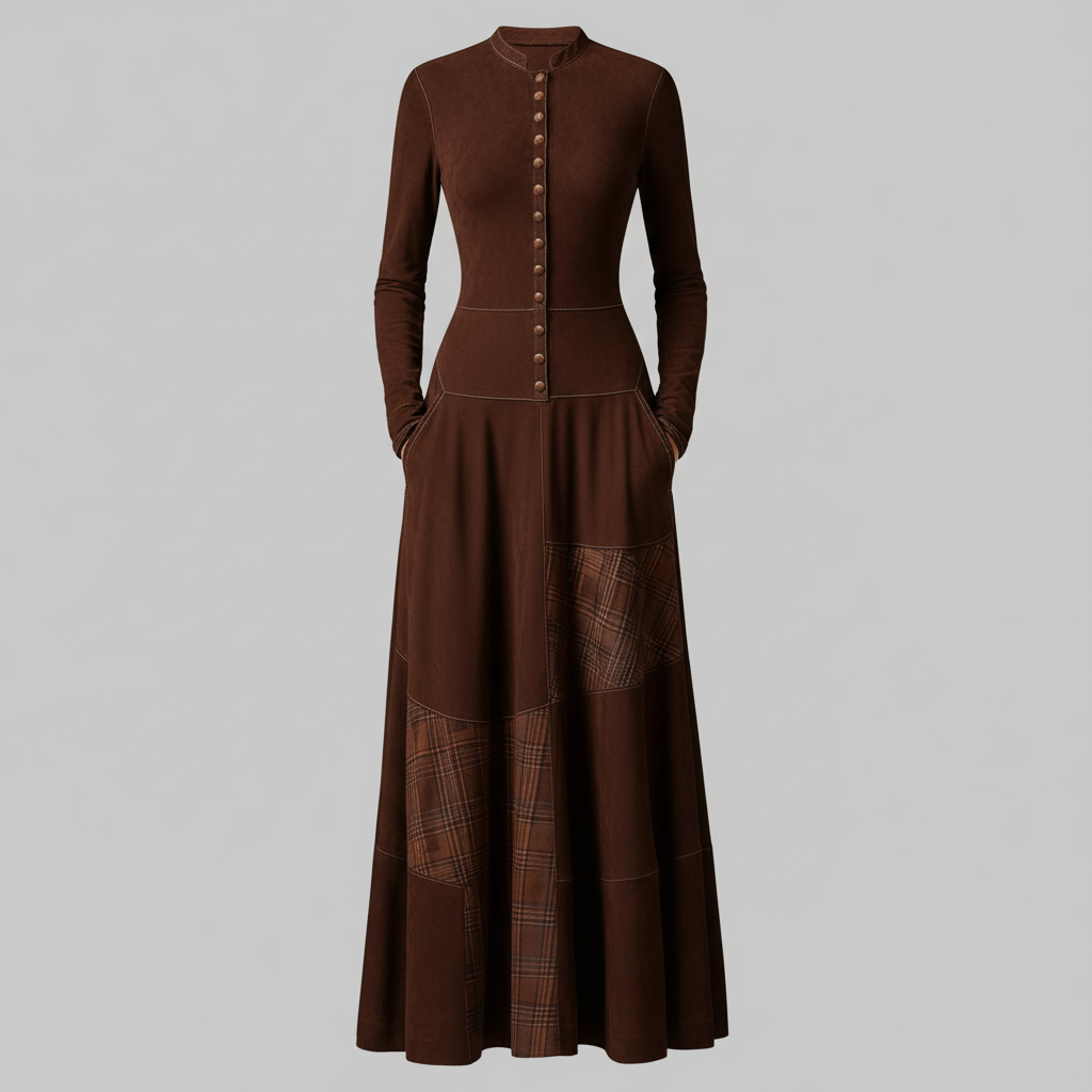 Erleben Sie zeitlose Eleganz mit dem Fringilla Vintage Wildlederkleid. Dieses atemberaubende Stück kombiniert luxuriöses Wildleder mit klassischen karierten Akzenten und schafft einen Look, der sowohl historisch als auch modisch ist. Seine lange, fließende Silhouette sorgt für einen dramatischen Touch und ist ideal für Frauen, die Stil mit Charakter und Charme schätzen.