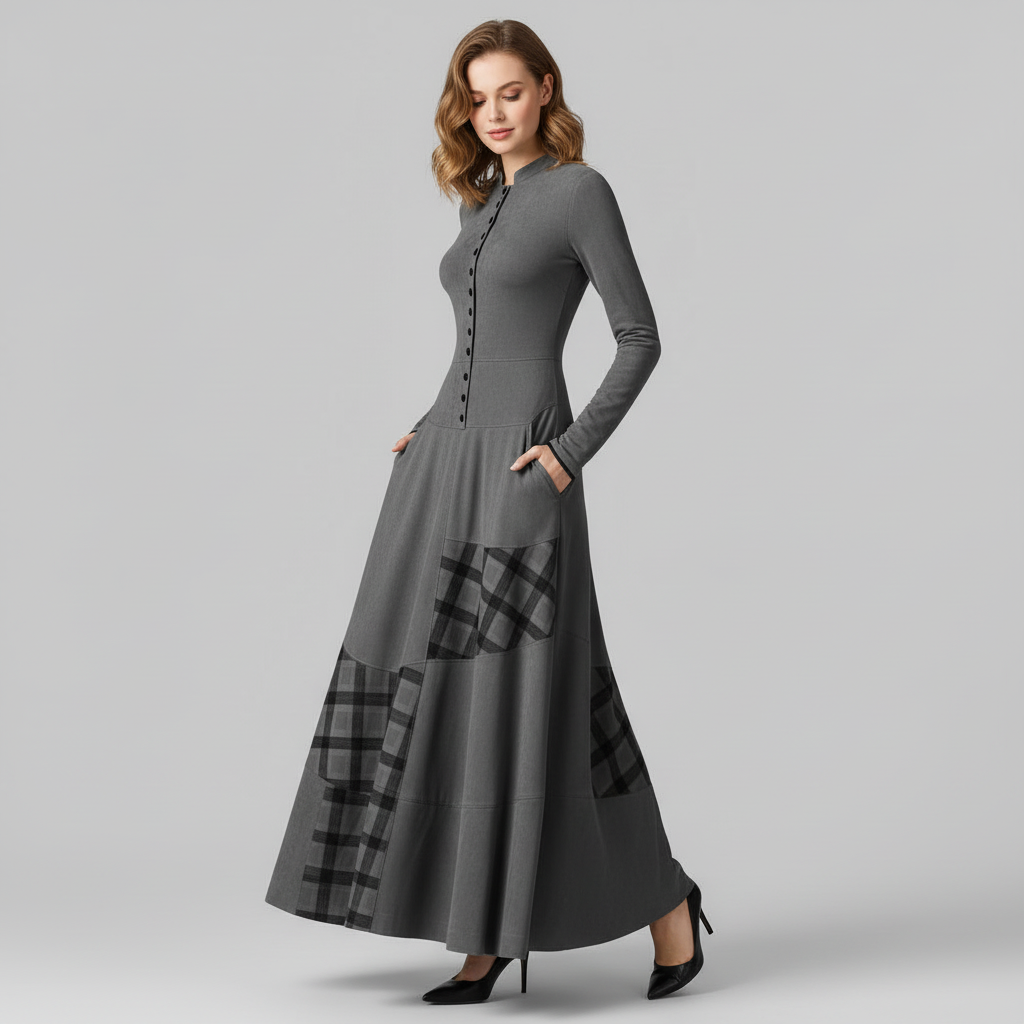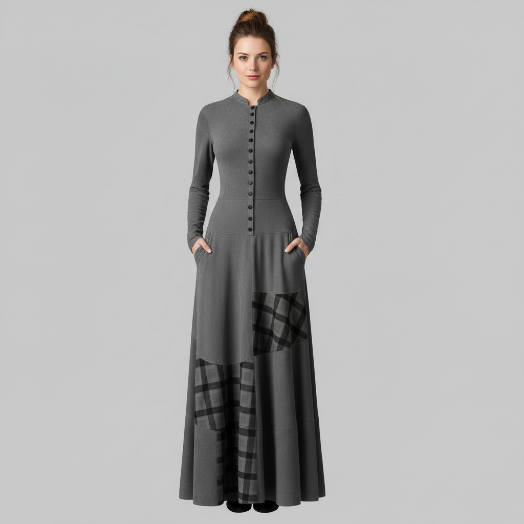 - Fließender, karierter Patchwork-Rock: Das einzigartige Design verleiht Tiefe und Eleganz mit anmutigen Bewegungen.