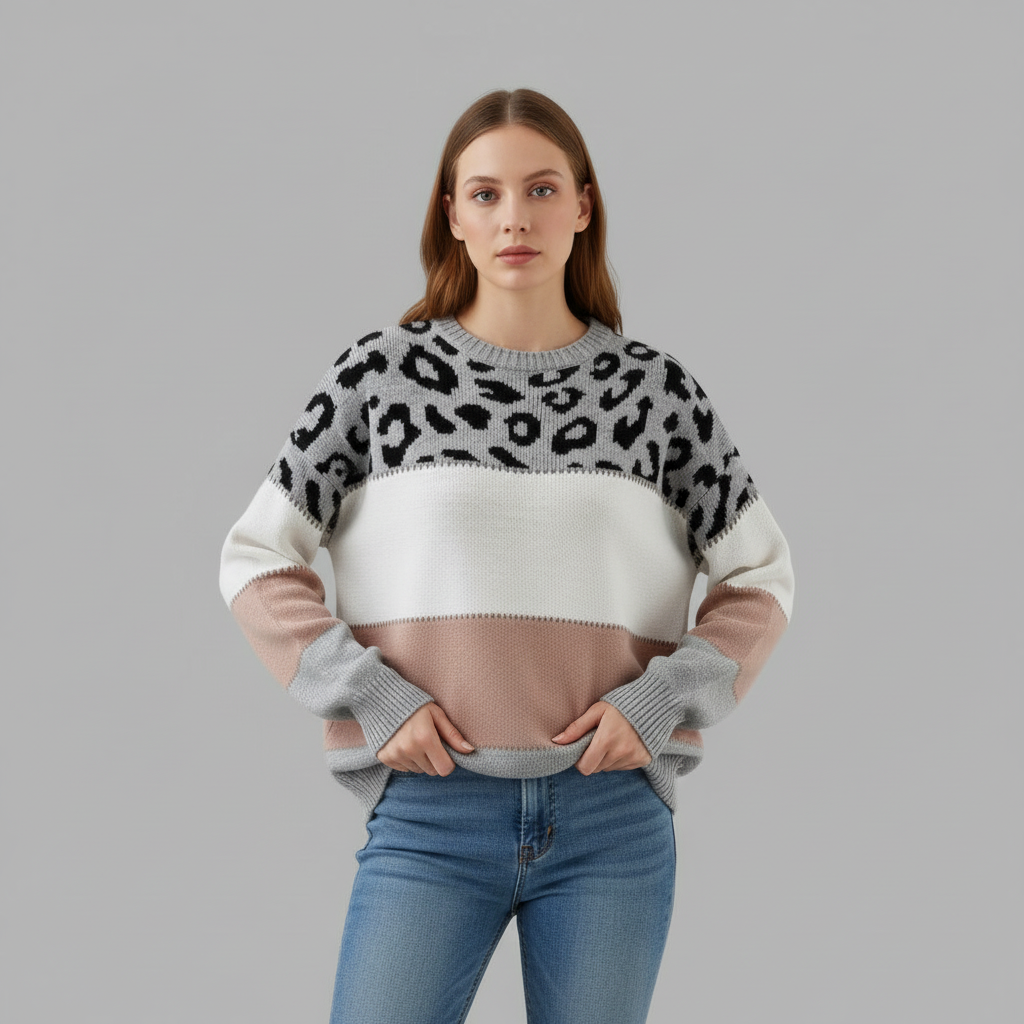 Der Cheyenne-Pullover für Damen kombiniert stilvolle Eleganz mit gemütlichem Komfort. Mit seinem auffälligen Panther-Print ist dieser Pullover ideal für Frauen, die sowohl warm als auch modisch gekleidet sein möchten. Er ist in vielseitigen Grau- und Rosatönen erhältlich und lässt sich hervorragend mit Jeans, Leggings oder Röcken kombinieren.